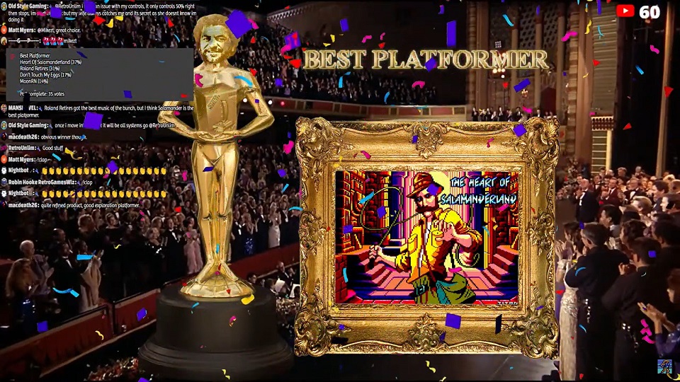 | Le 02 Mai 2025, sur la chaine Twitch de Xyphoes, Salamanderland, un jeu pour lequel j'ai dessiné l'écran-titre, reçoit le SUGAR d'OR du meilleur jeu de plates-formes. |
