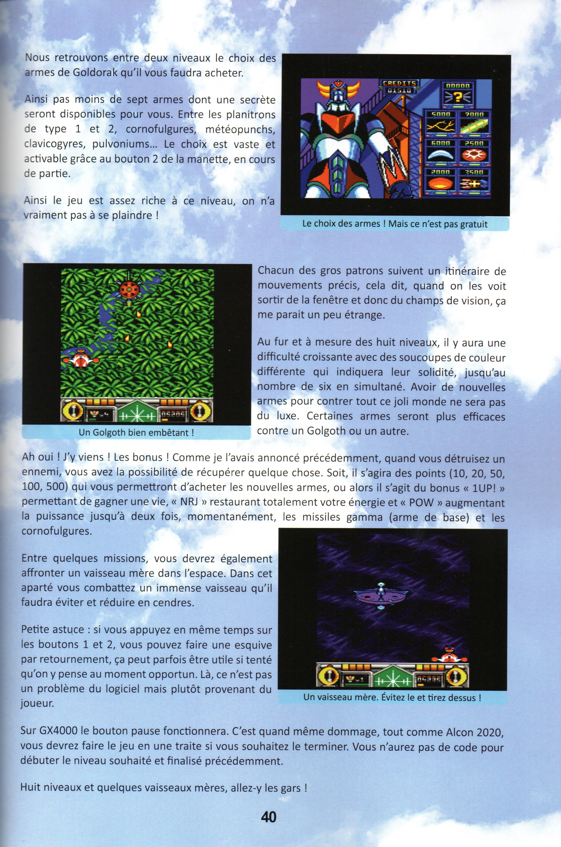 l’arsenal de Goldorak en appuyant sur le second bouton de la manette de la