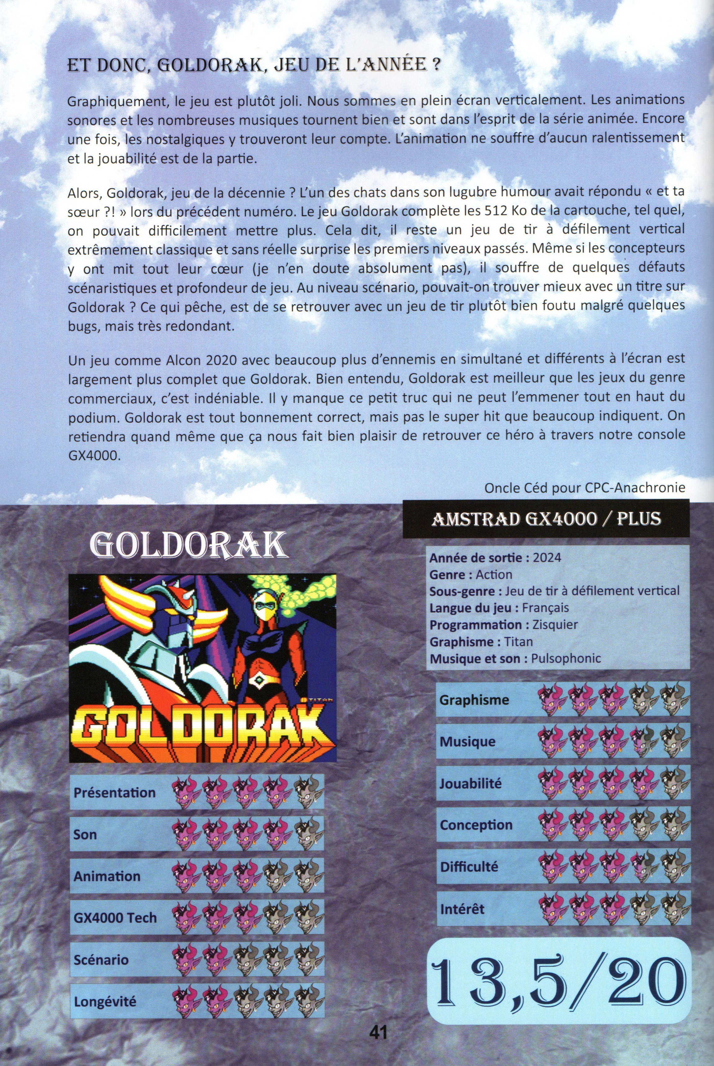 Cette page est dédiée à un projet de jeu Amstrad GX4000 et CPC Plus de type Shoot'em up sur le thème de Goldorak